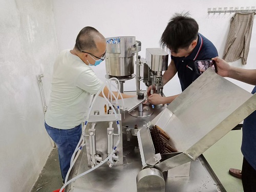 2022年6月15日,外省設備調試地點福建省泉州醫學高等專科學校,我廠安排技術人員周武前往,對其購置的口服液灌軋一體機等設備進行了安裝調試,隨后指導學校相關老師對設備的使用和實際操作,并就設備的維護保養及注意事項做了詳細的講解。